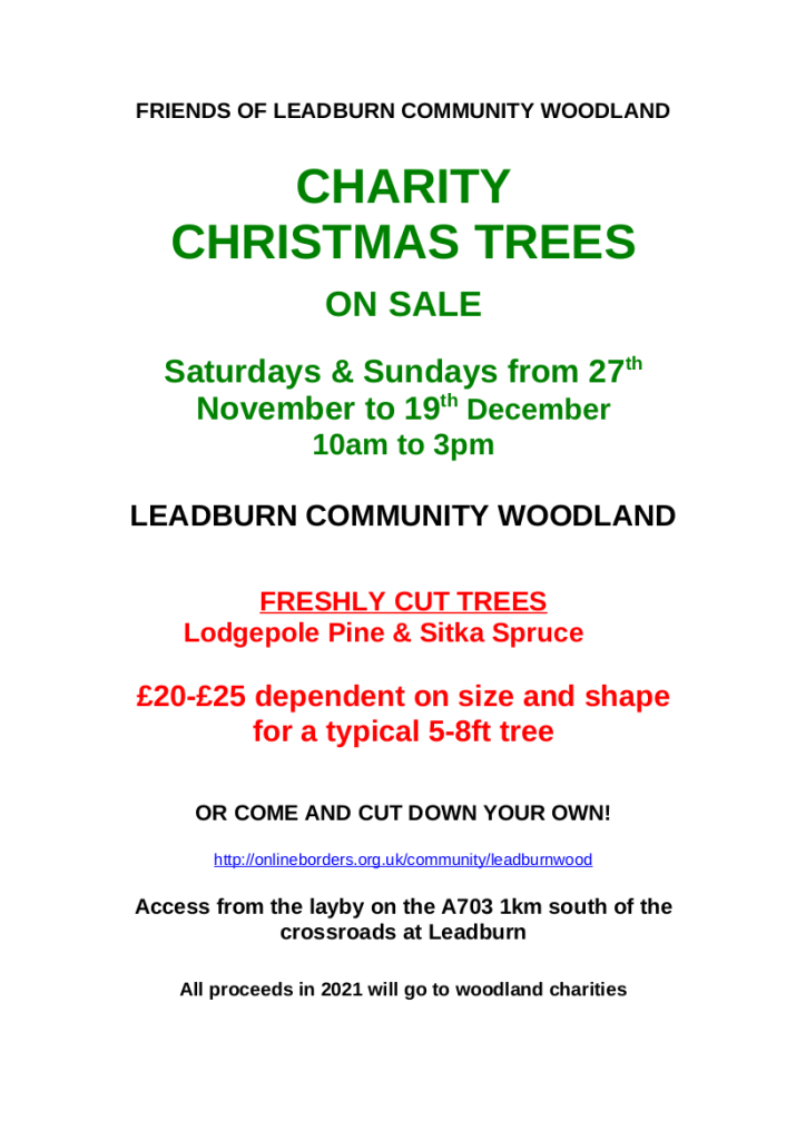 Hi Juliette, it’s Leadburn Community Woodland who are offering Christmas Trees, so you will need to contact them directly. Their contact info is on the flyer. All the best, Three Hares