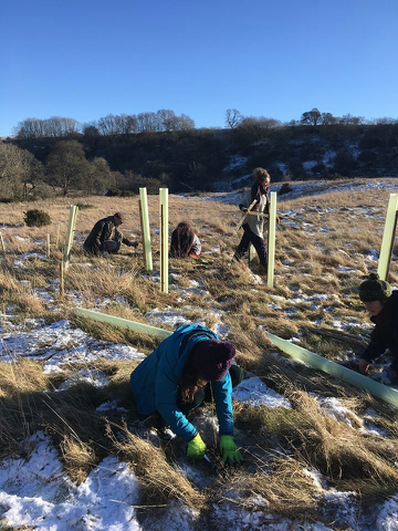 Jobs include swapping spiral guards to deer guards, removing competitive grasses from base of trees, and generally just giving our newly planted trees some TLC.