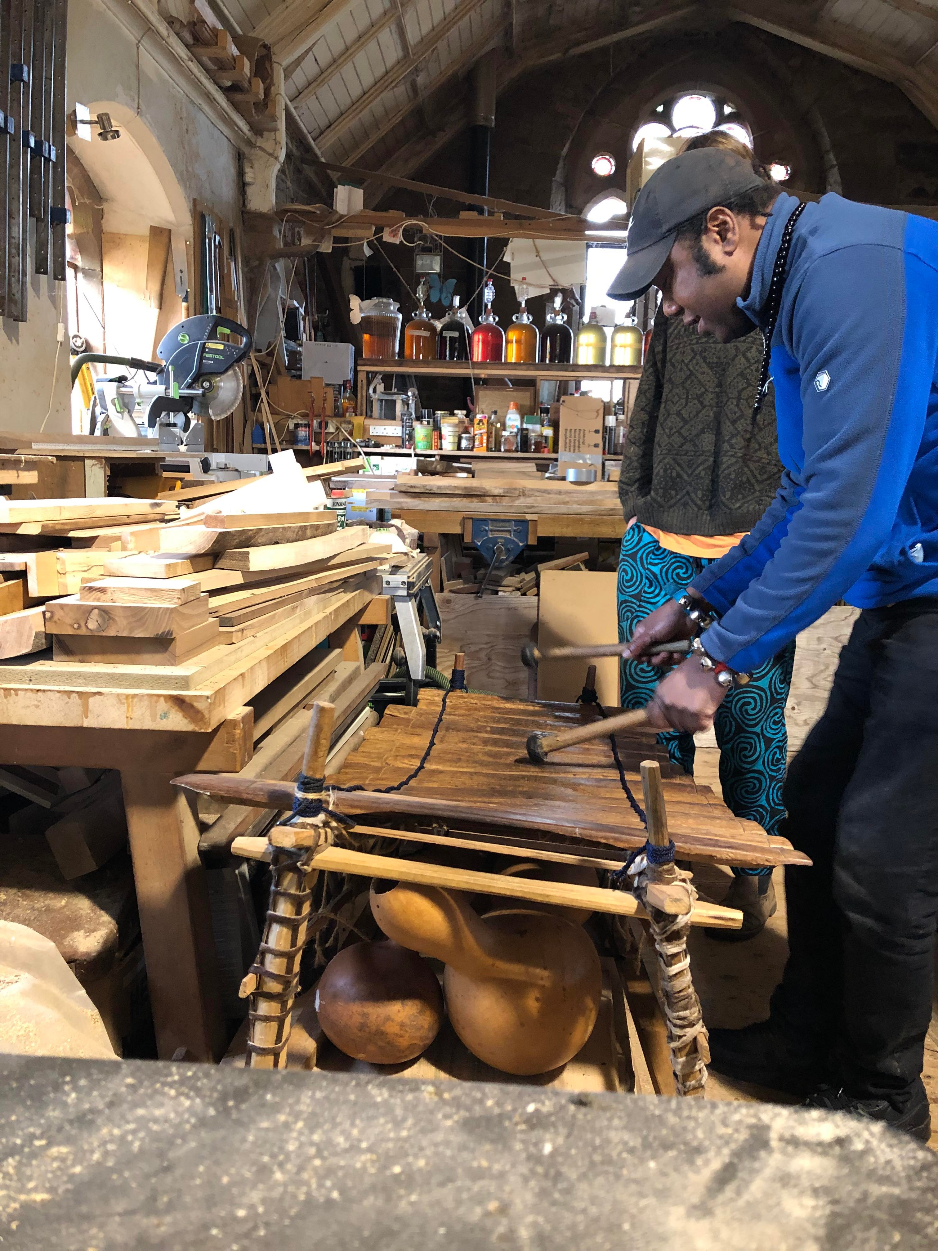 This Saturday 28th May, 12 – 3pm, will be the first music workshop in the newly built Musical Forest at The Three Hares. This workshop will be lead by Suleman Chebe, an experienced community musician, educator, storyteller and African historian.