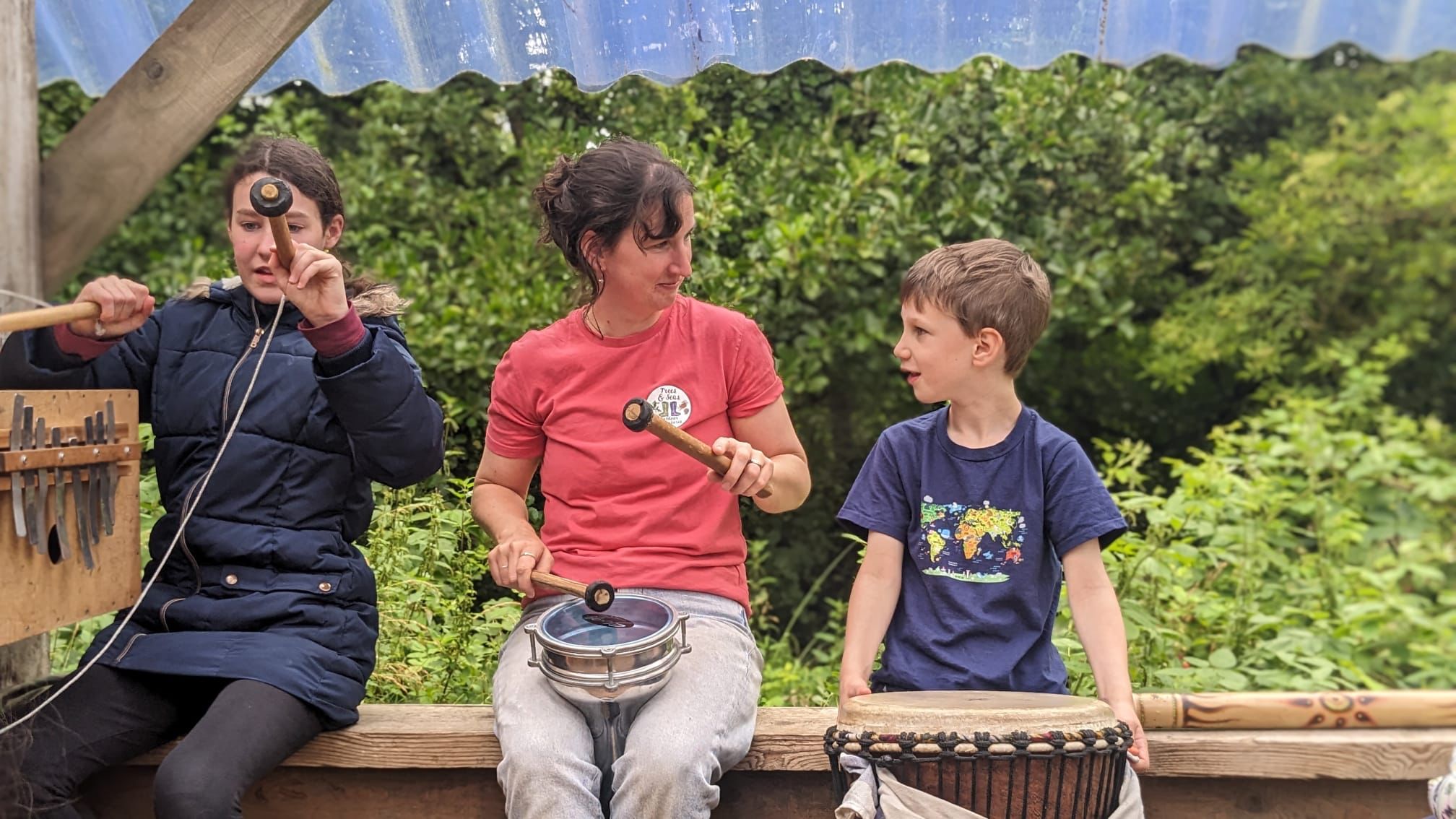 Three Hares were grateful to receive funding to run more Musical Forest Workshops this summer, facilitated by Mischa Stevens. There was funding to run a Mental Health session, and two sessions with Trees and Seas forest school group (see photos).