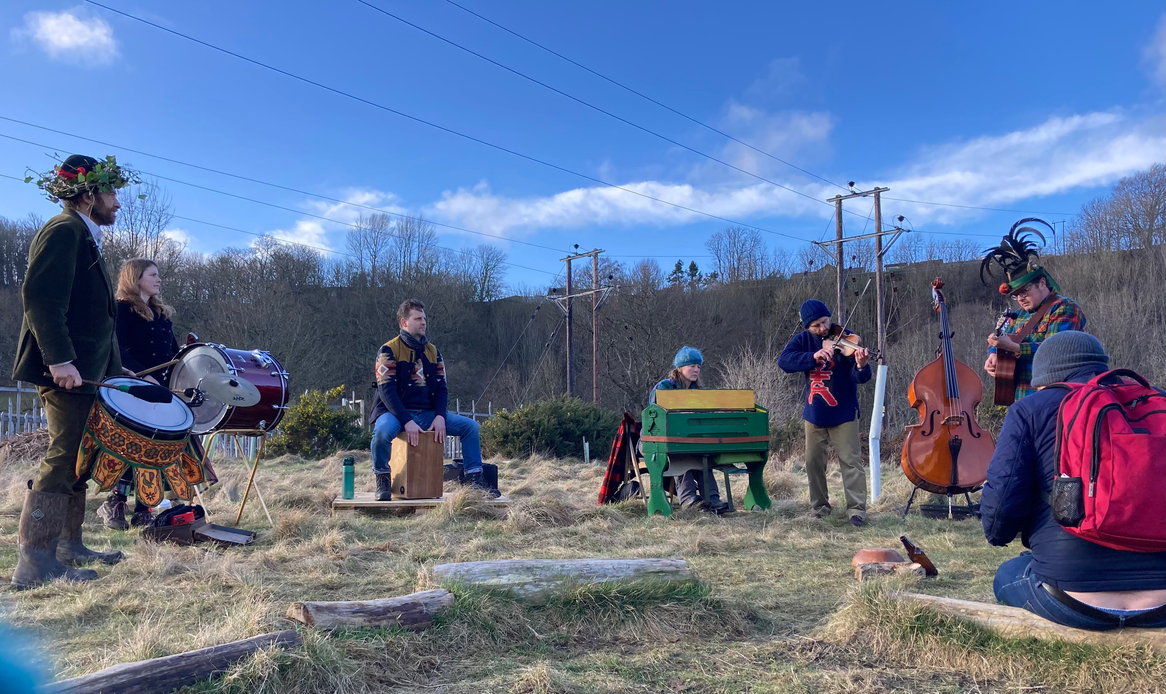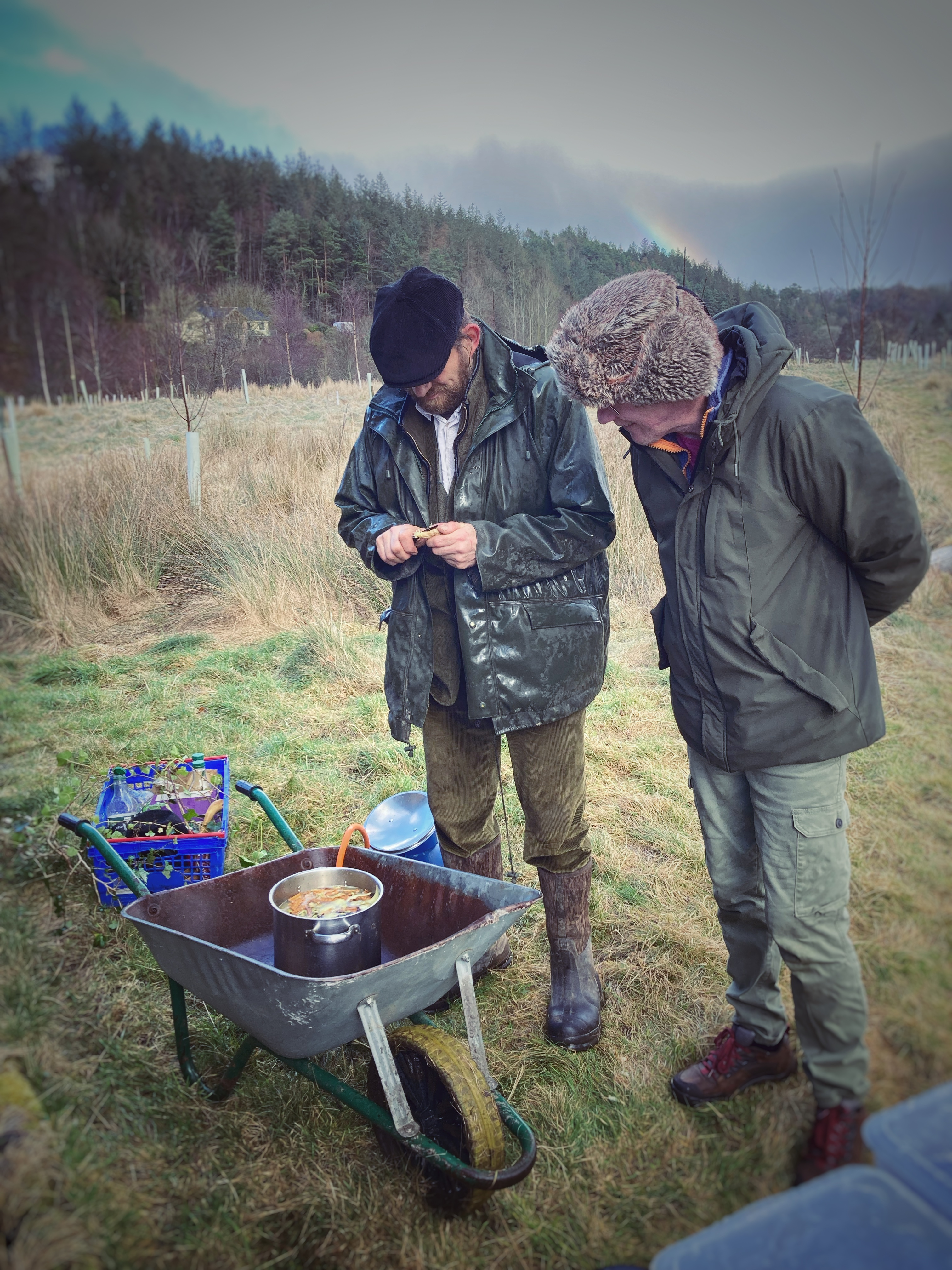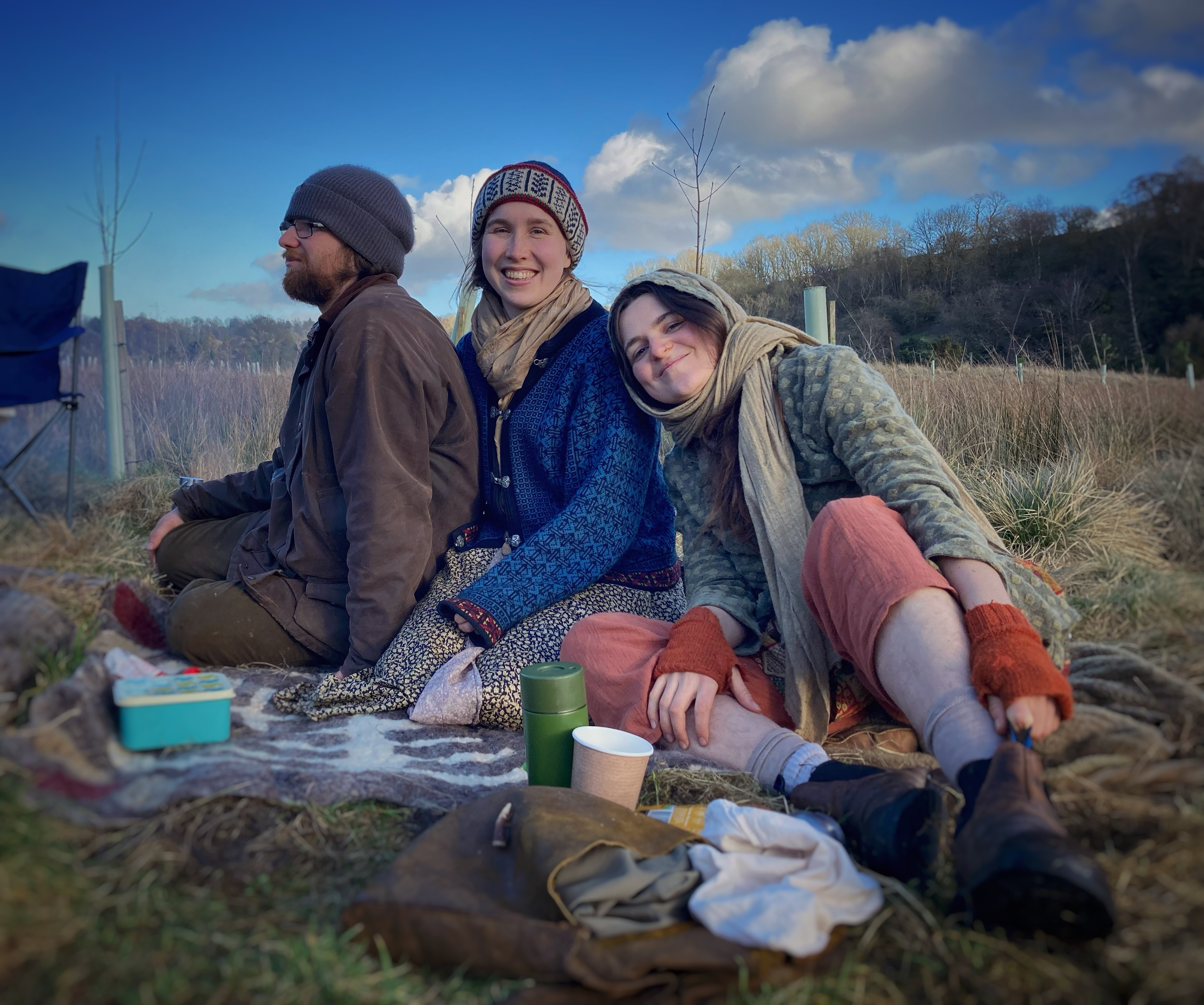Last weekend (22nd Feb) we celebrated our Orchard that we planted last year, wishing the trees well for the year ahead. Thanks should go out to our hard working, dedicated volunteers Sima, Andrew and Katy who have looked after the Orchard so well this past year, mainly by scything the bracken to ensure the trees don’t get smothered. This in turn will increase the biodiversity of the site, as well as providing a good opportunity to learn scything techniques. We will have plenty more opportunities for folk to come to Three Hares to learn scything this year, so if you are interested, drop us an email or keep a look out here for dates.