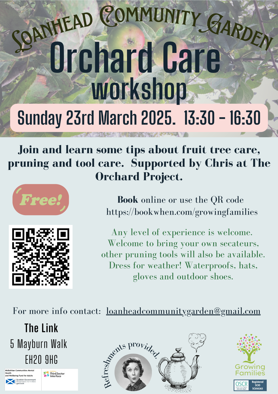 Sunday 23rd March 1:30-4:30pm at Loanhead Community Garden. Book your free place online (see poster attached).