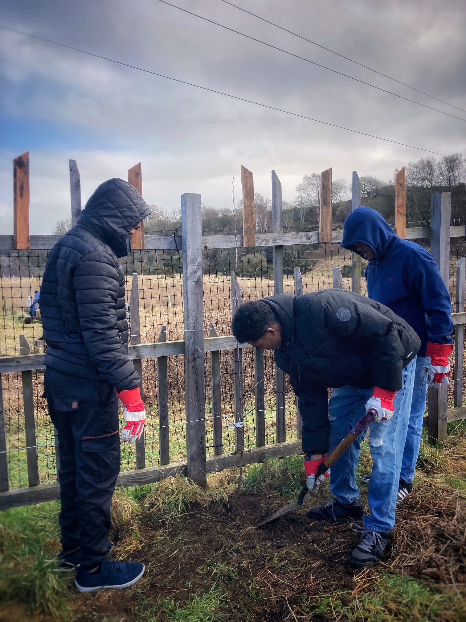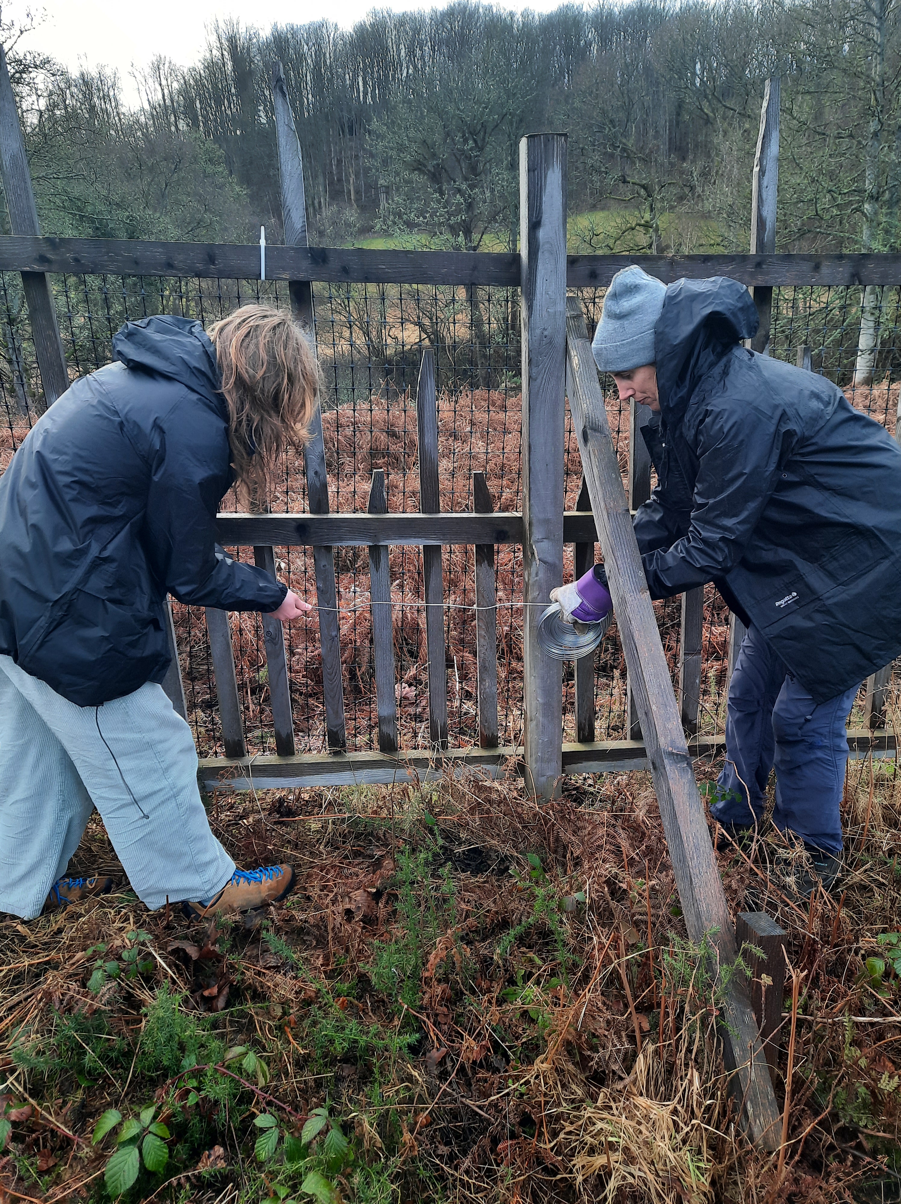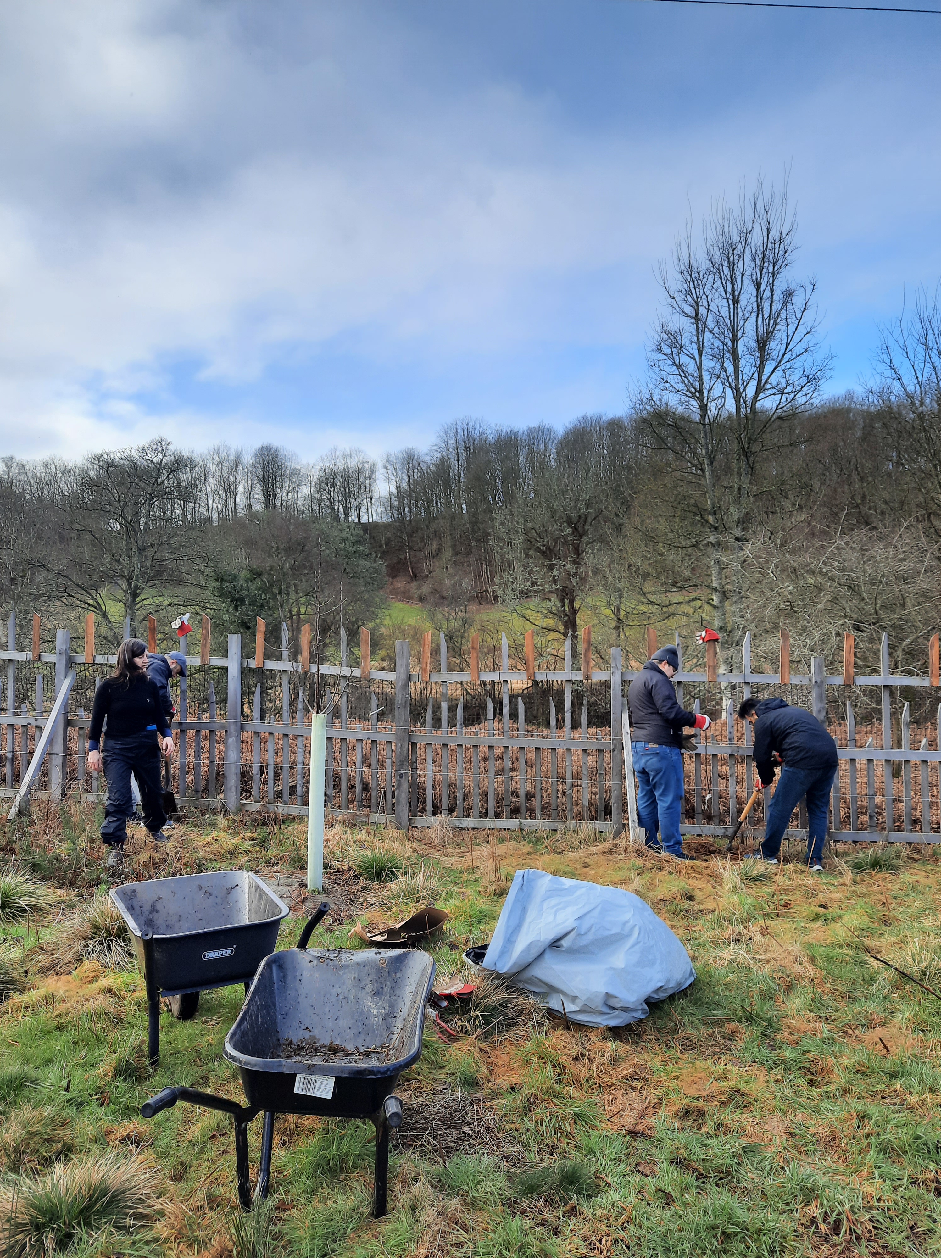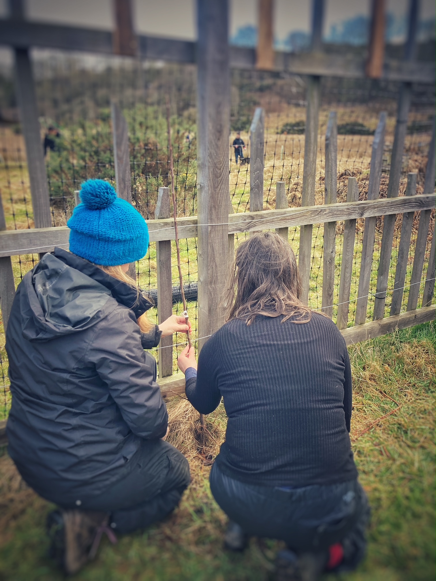 Loving that Spring has well Sprung by now, but whilst flora and fauna were still all tucked up, Three Hares were busy! In February we planted more trees in our Community Orchard and added some extra protection from deer to our Orchard fence. Fruit trees need a lot of room to grow, but to fit in more trees to the space we created some Espalier frames around the inside perimeter of the deer fence. We have planted 8 more heritage variety Apple Trees along this wire fence line, all that are suitable for Espalier planting. We source our Apple Trees from the wonderful Appletreeman.